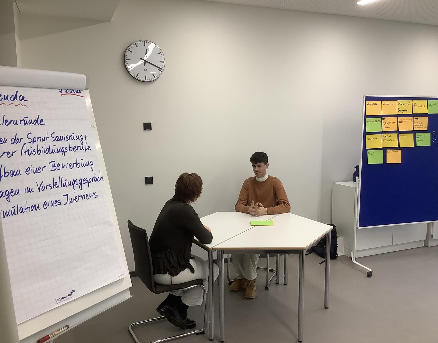 Im Anschluss daran ging es vor allem um die Situation des Vorstellungsgesprächs. Am Ende erprobten zwei Schüler die Simulation einer solchen Gesprächssituation durch – eine bereichernde Erfahrung auch für die Zuschauenden.