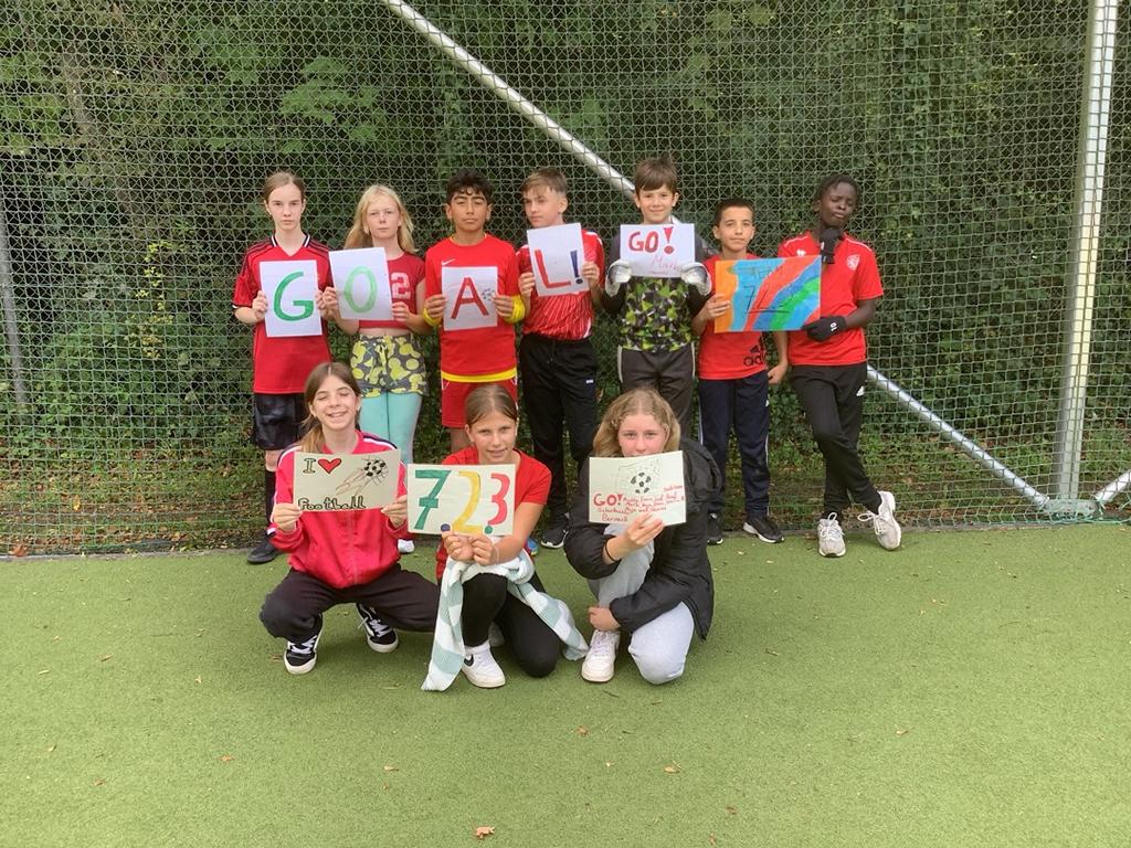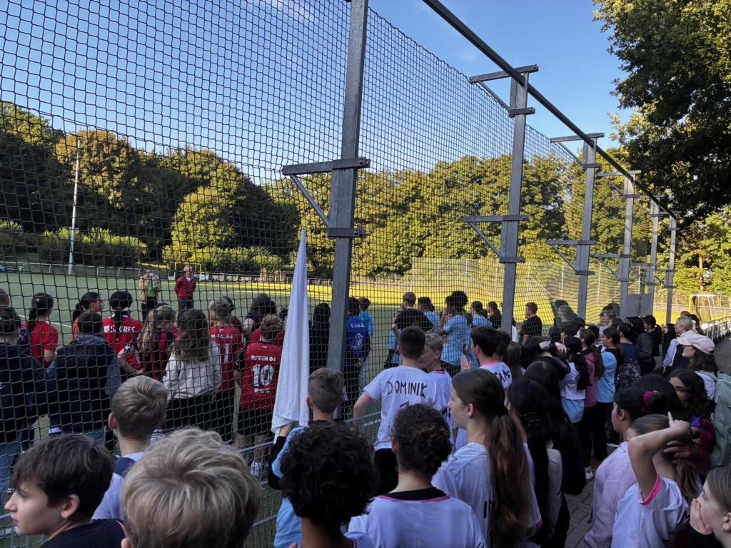 Einen ganzen Schultag nahm sich Team 7 für dieses Sportevent und es sollte sich lohnen. Herr Ulbrich und Herr Lingen hatten ganze Arbeit geleistet, den Platz des TV Dünnwald organisiert und den Turnierplan ausgeklügelt. Alle sechs Klassen unseres Jahrgangs traten gegeneinander an – das Siegerteam war am Ende die 7.1.2. Doch alle Spieler*innen der gemischten Teams gaben ihr Bestes und bald werden wir wissen, wer den Fairnesspreis gewonnen hat. Alle Klassen erhalten übrigens eine Belohnung fürs Mitmachen: Einen Gutschein für die Straßenkickerbase!
